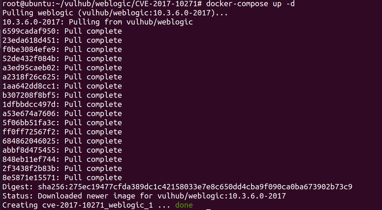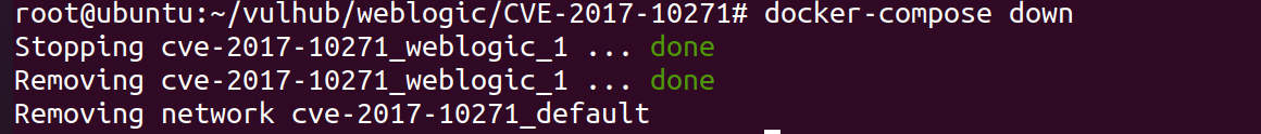 进入/root/vulhub/weblogic/CVE-2017-10271路径docker-compose ps -a 运行此靶场在使用