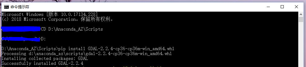(2)pip install GDAL-2.2.4-cp36-cp36m-win_amd64.whl