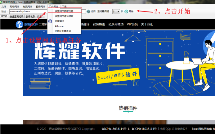 第五步:运行Excel浏览器,设置网页抓取任务。
