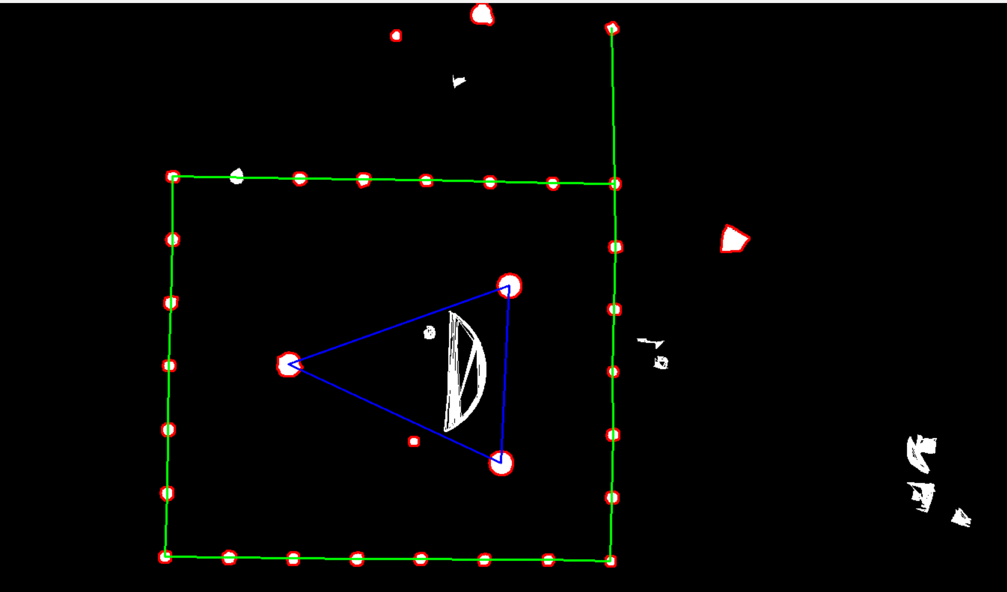 # 文件名:img.py # 20250504 import cv2 import numpy as np #导入自己的类 import log logger = log.logger_init() ######################################################################### # 获取 含有疑似椭圆的灰度图 def get_object_mask(gray,img_show=True): # 初始化MSER检测器(使用正确参数名) mser = cv2.MSER_create( delta=5, min_area=100, max_area=800, max_variation=0.25, min_diversity=0.5 ) # 检测区域 regions, _ = mser.detectRegions(gray) # 过滤 一部分不需要的objects contours = [] for region in regions: if len(region) >= 20: # 至少5个点才能拟合椭圆 ellipse = cv2.fitEllipse(np.array(region)) # 椭圆有效性验证 _, (a, b), angle = ellipse if min(a, b) <= 0 : # 过滤过于扁平的椭圆 continue if max(a,b)/min(a,b)>=1.2: continue # area = cv2.contourArea(region) # if 3.14 * a * b / 4 > 1.2 * area: # 轮廓包围面积过小 # continue contours.append(region) if img_show: # 可视化结果 vis = cv2.cvtColor(gray, cv2.COLOR_GRAY2BGR) cv2.drawContours(vis,contours,-1,color=(0,255,0),thickness=2) cv2.imshow('MSER Detection', vis) cv2.waitKey(0) cv2.destroyAllWindows() # 创建模板 rows, cols = gray.shape mask = np.zeros((rows, cols), dtype=np.uint8) cv2.drawContours(mask, contours, -1, 255, -1) # 使用模板 # roi_gray = cv2.bitwise_and(gray, mask) # roi_gray = cv2.bitwise_or(roi_gray, mask) if img_show: cv2.imshow('mask',mask) cv2.waitKey(0) cv2.destroyAllWindows() return mask def find_edges_in_gray(gray): """在灰度图中通过 高斯滤波 ->canny->形态闭运算->找到外轮廓""" # 使用直方图均衡化 对低对比度图像 # equalized = cv2.equalizeHist(gray) # 使用高斯模糊降噪(可选,推荐) blurred = cv2.GaussianBlur(gray, (5, 5), 0) # Canny边缘检测 low_threshold = 100 high_threshold = 200 edges = cv2.Canny(blurred, low_threshold, high_threshold) # 形态学操作 连接断裂边缘: kernel = np.ones((7, 7), np.uint8) closed = cv2.morphologyEx(edges, cv2.MORPH_CLOSE, kernel) edges = closed # 查找轮廓 contours, hierarchy = cv2.findContours( edges, cv2.RETR_EXTERNAL, # 只检测外部轮廓 cv2.CHAIN_APPROX_SIMPLE # 压缩水平、垂直和对角线段,只保留端点 ) return contours def find_ellipse_in_edges(contours): """在边界曲线内找到接近圆的椭圆的圆心、轮廓线""" min_contour_area = 400 # 根据实际调整 ellipse_contours = [] ellipses = [] for cnt in contours: # 过滤过小轮廓(根据实际调整) if len(cnt) < 10: # 至少需要5个点拟合椭圆(实际可能需要更多) continue # 椭圆拟合 if len(cnt) >= 10: ellipse = cv2.fitEllipse(cnt) (x, y), (major, minor), angle = ellipse # 筛选有效椭圆(根据实际需求调整条件) if max(major, minor) / min(major, minor) < 1.2: # 按照近似为圆的特点筛选 area = cv2.contourArea(cnt) # print(area) if area*1.4 < minor*minor*3.14/4: # 面积特张筛选 continue # 跳过小轮廓 ellipses.append(ellipse) ellipse_contours.append(cnt) return ellipses, ellipse_contours ######################################################################### # 获取 矩形的四个顶点 def get_centroid(points): """计算多边形顶点的质心(几何中心)""" x = [p[0] for p in points] y = [p[1] for p in points] centroid_x = sum(x) / len(points) centroid_y = sum(y) / len(points) return centroid_x, centroid_y def sort_vertice_indices_clockwise(points): """按顺时针顺序排序顶点(支持凸/凹多边形)""" centroid = get_centroid(points) points = np.array(points) # 计算每个点相对于质心的极角(角度) angles = np.arctan2(points[:, 1] - centroid[1],# 1,2象限 【0 180】 3,4象限 【-180 0】 points[:, 0] - centroid[0]) # 极角计算时,建议使用np.arctan2而非np.arctan,避免除零错误 # 按极角排序(顺时针) sorted_indices = np.argsort(angles) #sorted_points = points[sorted_indices] return sorted_indices def point_to_line_distance(p, p1, p2): """ 计算点p到直线(p1, p2)的距离 p1=[x1,y1],作为判断是否在直线上的依据 """ if np.allclose(p1, p2, atol=1e-6): return np.linalg.norm(p - p1) # 如果p1和p2重合,退化为点到点距离 return np.abs(np.cross(p2 - p1, p - p1)) / np.linalg.norm(p2 - p1) def points_classifier_with_line(ellipses,max_ellipse_area =300): """ (x, y), (major, minor), angle = ellipse 将点按照是否近似在同一条直线上为依据,分类为集合 """ # 搜索三点共线的点 from itertools import combinations lines = [] n = len(ellipses) if n < 3: return lines line_point_indexes_list= list() # 遍历所有两点组合 for i, j in combinations(range(n), 2): # 取椭圆圆心作为确定直线的两个点 ellipse1, ellipse2 = ellipses[i], ellipses[j] p1 = np.array(ellipse1[0],dtype=np.float32) p2 = np.array(ellipse2[0],dtype=np.float32) ab1 =ellipse1[1] ab2 =ellipse2[1] if ab1[0]*ab1[1]*3.14/4 > max_ellipse_area or ab2[0]*ab2[1]*3.14/4 > max_ellipse_area: continue # 跳过重合点 thresh = min(ellipse1[1][0],ellipse1[1][1],ellipse2[1][0],ellipse2[1][1] )#阈值 if np.allclose(p1, p2, atol=1e-2): continue # 找到当前直线上的所有点 line_points = [p1, p2] line_index_set =[i,j] for k in range(n): if k == i or k == j:#去重复 continue p3 = np.array([ellipses[k][0][0],ellipses[k][0][1]],dtype=np.float32) # 计算点到直线的距离 epsilon = min(thresh,ellipses[k][1][0],ellipses[k][1][1])*0.1 if point_to_line_distance(p3, p1, p2) < epsilon: line_points.append(p3) line_index_set.append(k) #print(p1,p2,p3) # 如果当前直线有至少3个点,添加记录 if len(line_index_set) >= 3: line_point_indexes_list.append(set(line_index_set)) # 去除重复的线 for i in range(len(line_point_indexes_list)): set_i = line_point_indexes_list[i] if len(set_i)==0: continue for j in range(len(line_point_indexes_list)): if i == j: continue set_j = line_point_indexes_list[j] if len(set_j) == 0: continue set_ij = set_i.intersection(set_j) if len(set_ij)>=3: set_i = set_i.union(set_j) line_point_indexes_list[i] = set_i line_point_indexes_list[j] =set() line_point
