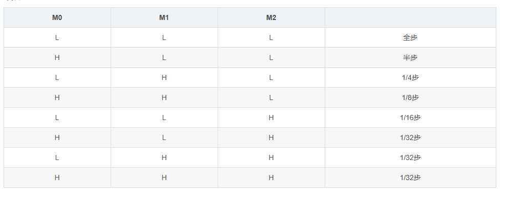 细分逻辑电平输入引脚,可根据上表输入相应的逻辑电平调节电机的步进角; |