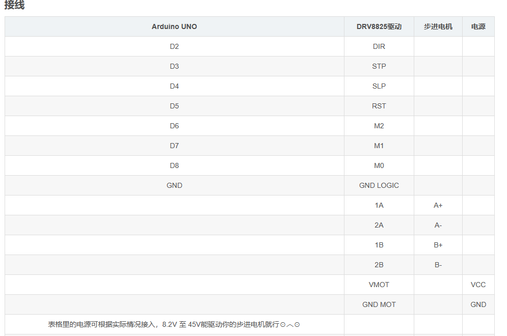 表格里的电源可根据实际情况接入,8.2V 至 45V能驱动你的步进电机就行⊙︿⊙