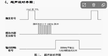 因为声速为340m/s。那么测出的距离就是(ECHO引脚高电平持续的时间*340m/s)/2。