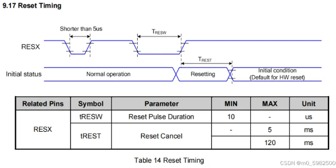 复位信号低电平有效,要求时间大于10us,复位后最好再等待120ms`
