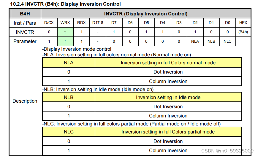 2.配置0XB1,0XB2,0XB3,0XB4寄存器,配置在不同颜色模式下屏幕的刷新率,0XB4寄存器配置屏幕是否反色