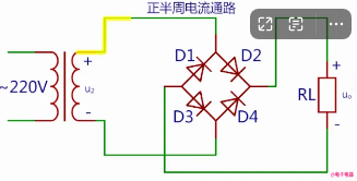 (3)每一个半周交流输入电压期间内,有2只整流二极管同时串联导通,另2只整流二极管截止。