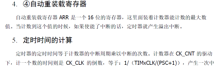 arr:计数重装值,psc分频数,Tclk系统时钟频率,Tout一个周期的时间。