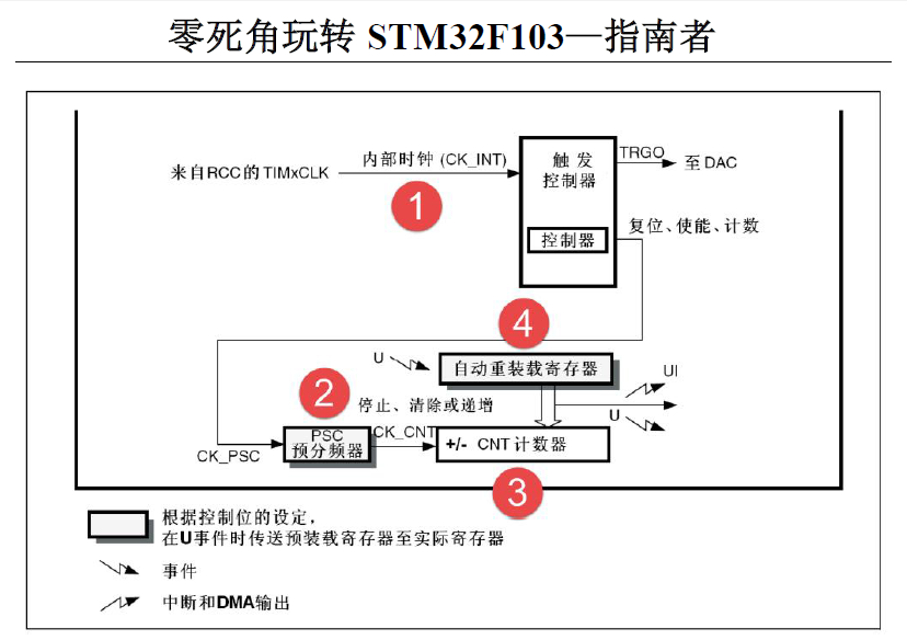 APB1的分频在STM32_SYSTICK的学习笔记中有详细描述。通过倍频器给定时器时钟的好处是:APB1不但要给TIM2-TIM5提供时钟,还要为其他的外设提供时钟;设置这个倍频器可以保证在其他外设使用较低时钟频率时,TIM2-TIM5仍然可以得到较高的时钟频率。