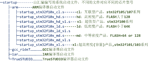 - Reset Handler 函数里面调用SystemInit 和__main 完成初始化和启动