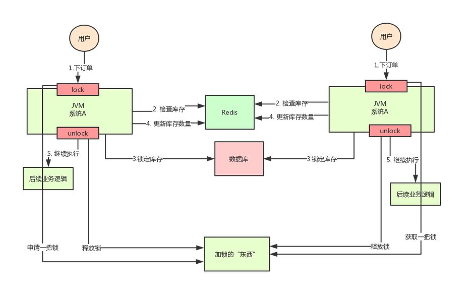 为什么呢?因为上图中的两个A系统,运行在两个不同的JVM里面,他们加的锁只对属于自己JVM里面的线程有效,对于其他JVM的线程是无效的。