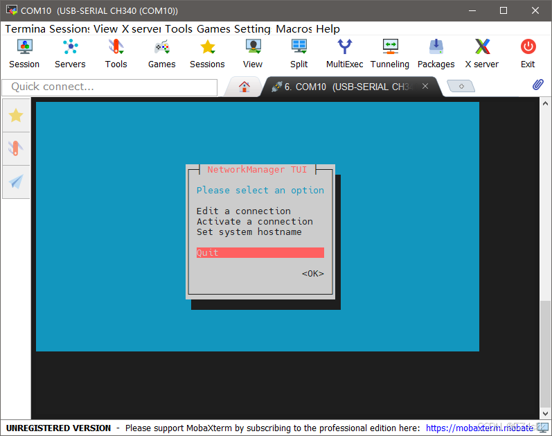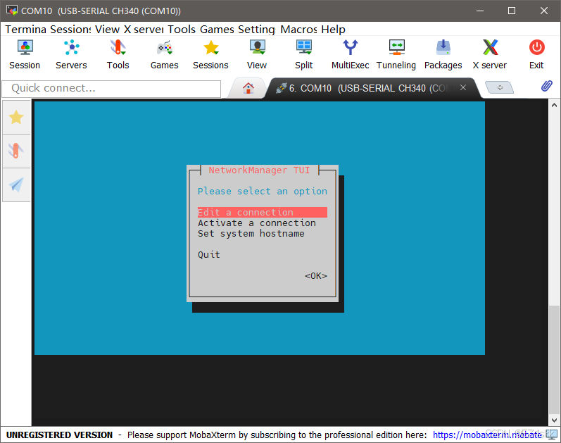 使用串口助手(楼主使用过的是MobaXterm)进行连接