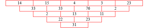 在一个凹槽中放置了 \(n\) 层砖块,最上面的一层有 \(n\) 块砖,从上到下每层依次减少一块砖。每块砖都有一个分值,敲掉这块砖就能得到相应的分值,如下图所示: