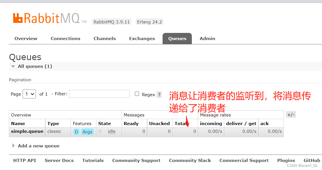@Component @Slf4j public class SimpleQueueLisener { //监听那个队列 @RabbitListener(queues = "simple.queue") public void receiveMessage(String message) { //由于对消息不做如何操作,在日志打印一下 log.info("接受到的消息是--->{}",message); } }