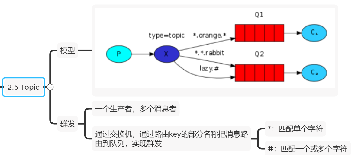 5.通配符模式(topicExchange),和路由模式非常像,路由规则不同