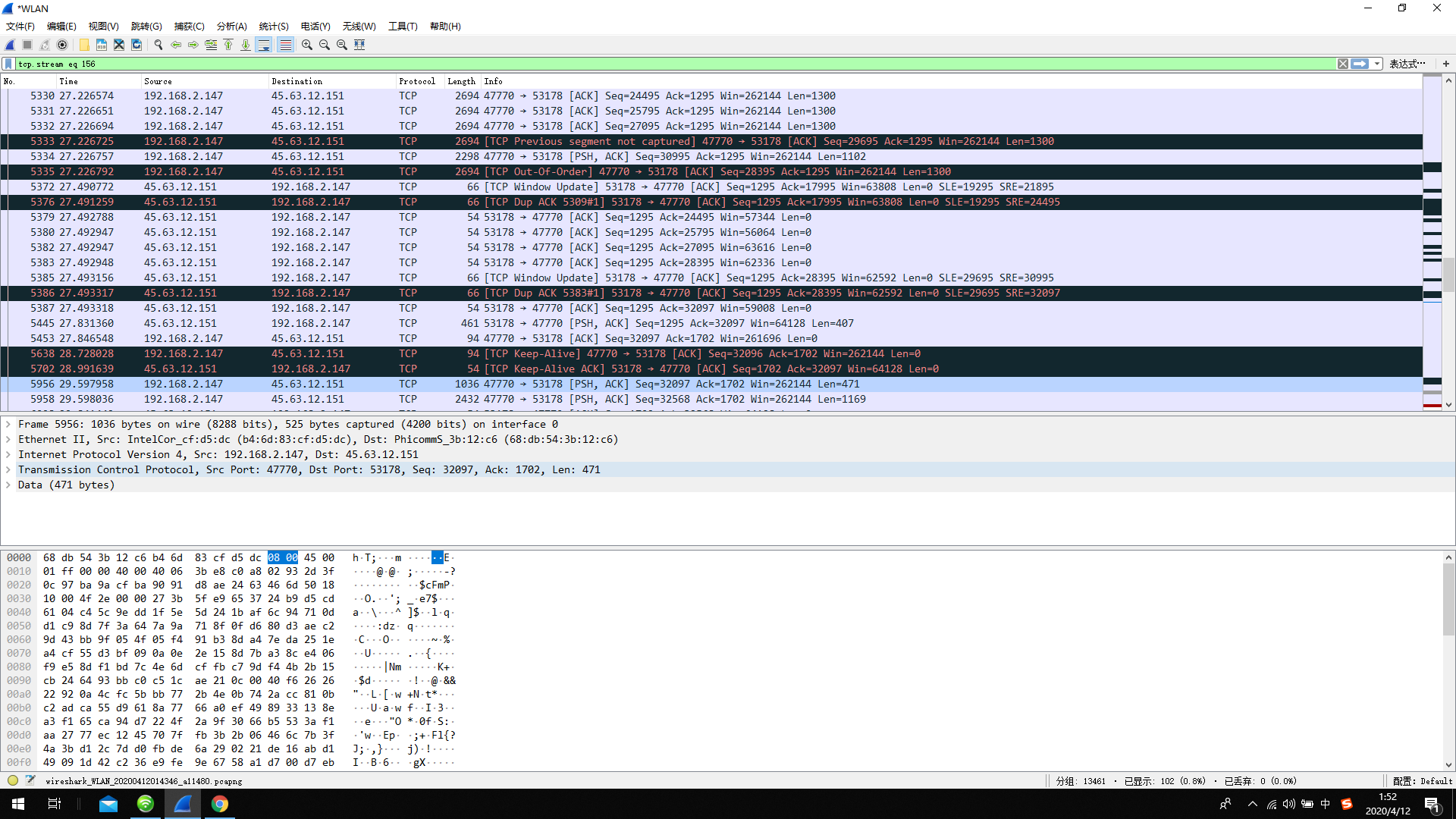 可以下在下图看到抓取是电脑的网卡和服务器之间进行数据交换,并不是抓取手机和服务器之间进行数据交换。可以看到流量是未加密的。