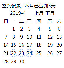 var html = "<div class='name'>签到记录: 本月已签到"+data.length+"天</div>";