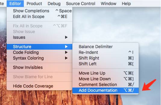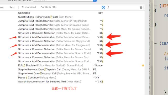 注意:Xcode8内置了开启注释的功能,位置在这里