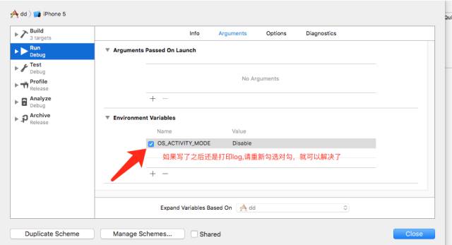 Xcode8里边 Edit Scheme-> Run -> Arguments, 在Environment Variables里边添加