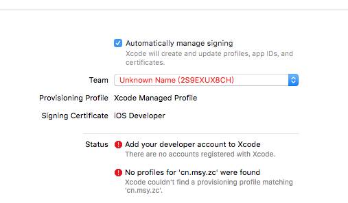 用Xcode8打开工程后,比较明显的就是下图了,这个是苹果的新特性,可以帮助我们自动管理证书。建议大家勾选这个Automatically manage signing(Ps.但是在beat2版本我用的时候,完全不可以,GM版本竟然神奇的又好了。)