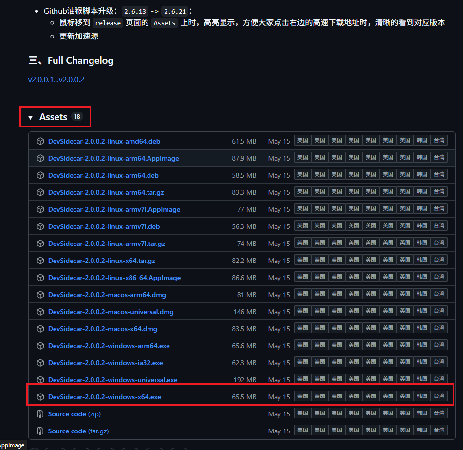 下载地址:Releases · docmirror/dev-sidecar。可以连手机热点暂时上github下载。
