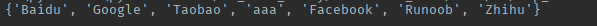 mylist = ['Google', 'Taobao', 'Runoob', 'Facebook', 'Runoob', 'Zhihu', 'Baidu', 'Google'] myset = set(mylist)
