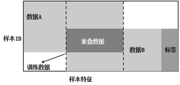 纵向联邦学习:在两个数据集的用户重叠较多而用户特征重叠较少的情况下,我们把数据集按照纵向(即特征维度)切分,并取出双方用户相同而用户特征不完全相同的那部分数据进行训练。比如有两个不同机构,一家是某地的银行,另一家是同一个地方的电商。它们的用户群体很有可能包含该地的大部分居民,因此用户的交集较大。但是,由于银行记录的都是用户的收支行为与信用评级,而电商则保有用户的浏览与购买历史,因此它们的用户特征交集较小