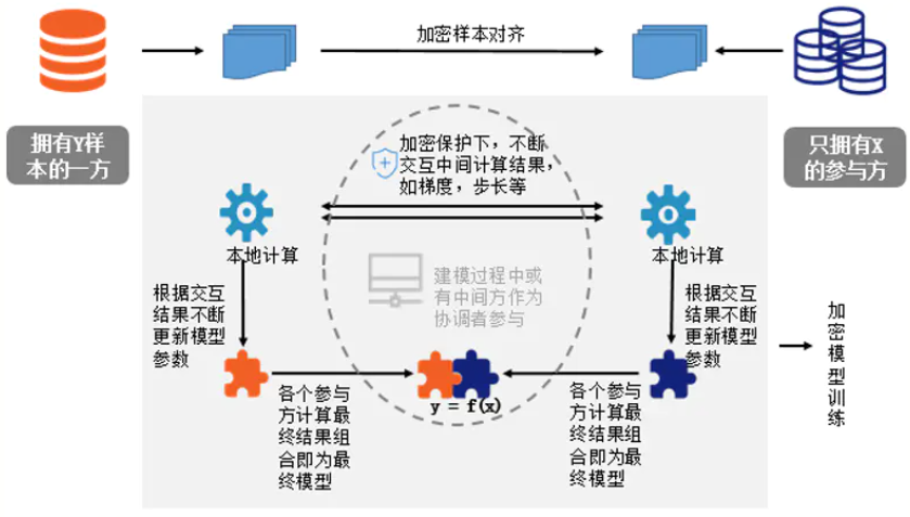 由于两家企业的用户群体并非完全重合,系统基于加密的用户样本对齐技术(如RSA),在A和B不公开各自数据的前提下确认双方的共有用户,并且不暴露不互相重叠的用户。以便联合这些用户的特征进行建模。