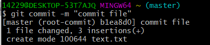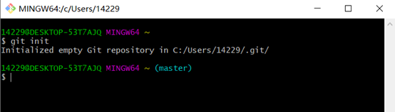 再通过git commit -m "first commit"命令将其提交到本地仓库中。