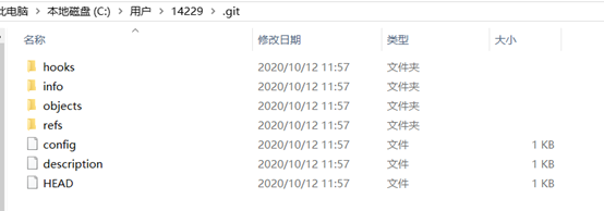 查看隐藏的项目,会发现多了一个隐藏的文件夹 .git,这个目录中存放的是本地库相关的目录和文件,注意不可随意删除。