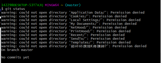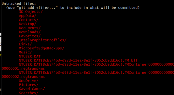 使用该命令可以查看当前工作区的状态,由于该仓库创建基于个人文档文件夹,已经存在许多文件。