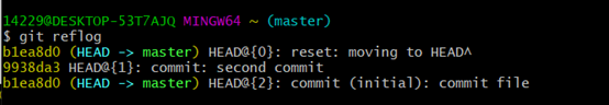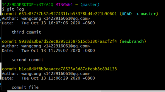删除最后一条记录和重复的操作记录,再执行git log操作查看操作记录,发现已经修改: