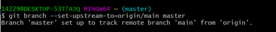 使用git branch --set-upstream-to=origin/main master命令建立关系
