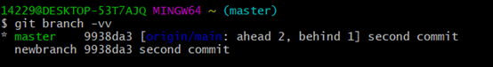 使用git branch -vv查看本地分支和远程分支的关联关系