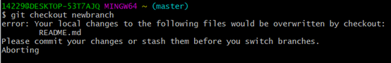 将newbranch合并到main,那么首先确保当期工作区处于main分支,可以使用git checkout main命令切换到main分支
