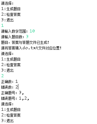 用户选择生成题目后随机生成不重复的四则运算表达式并写入文件