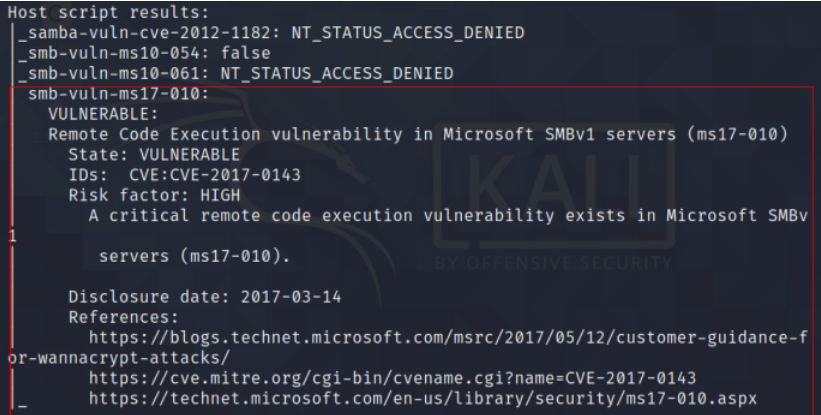 可以发现,靶机上扫到了4个漏洞,其中包括了MS17-010。