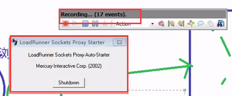 设置完,OK之后,弹出如下窗口,这时,千万不要点Shutdown,点这个后就不能录制了,因为点这个是把代理给停止了