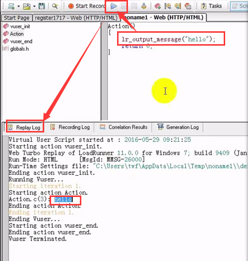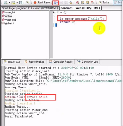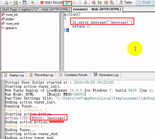 写如下一行函数,然后运行下脚本。(Lr_开头的是通用函数,web_开头的是web函数)