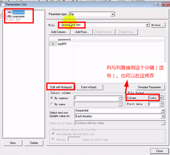 在弹出的窗口中,给参数起个名,点OK;参数化类型这块指的是我们的数据来自什么地方,一般LR中常见的参数类型就是File,file是记事本,就是我们把数据保存到记事本里去。