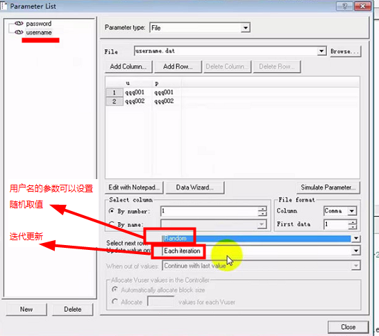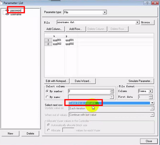 通过excle构造了用户数据信息,回放脚本我们设置迭代了100次。迭代100次每次都是跑一个新的值