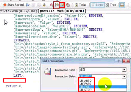 1)把每个请求设置成一个事物的话,就没必要一个个手动添加,可以在lr中设置自动事物。