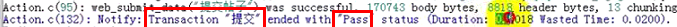 接下来我们来回放一下这个脚本。从日志中我们可以看到事物提交的状态是Pass,已pass状态介绍,用时:0.5018s 浪费0.0200s