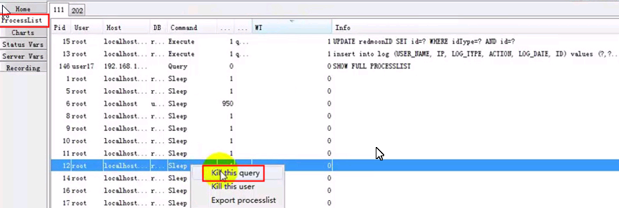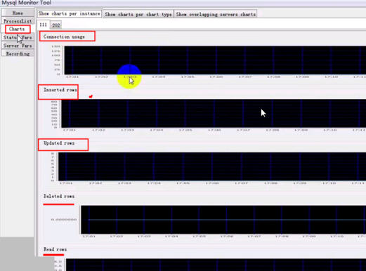 下面主要看连接的使用情况、插入的语句、更新的sql、删除的sql、修改的行数