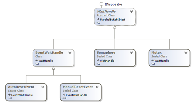 通过EventWaitHandle类型的构造函数,我们可以通过参数指定EventResetMode,从而选择事件状态的重置模式。当然,我们也可以直接使用EventWaitHandle的两个子类。