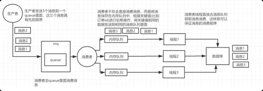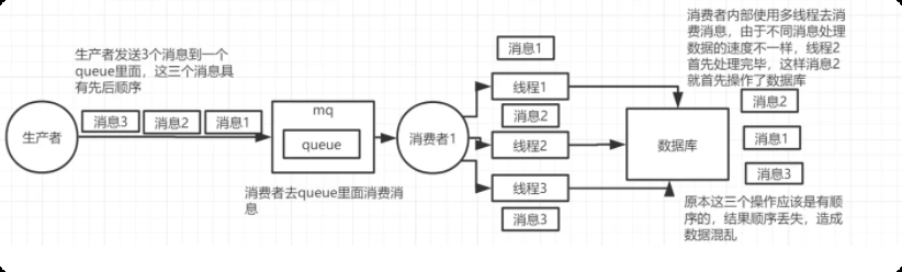 ②一个queue对应一个consumer,但是consumer里面进行了多线程消费,这样也会造成消息消费顺序错误。