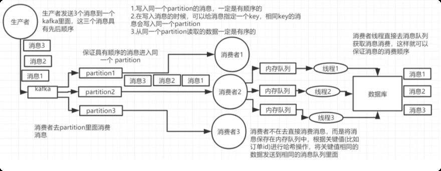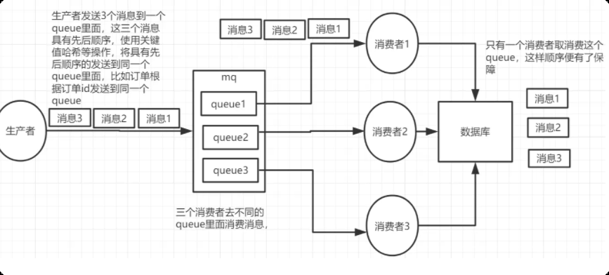 ①拆分多个queue,每个queue一个consumer,就是多一些queue而已,确实是麻烦点;这样也会造成吞吐量下降,可以在消费者内部采用多线程的方式取消费。