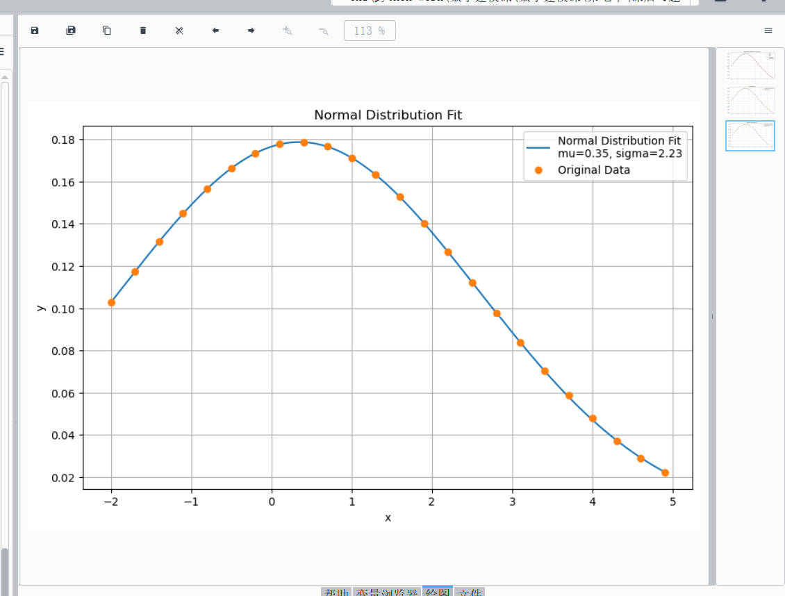 params, params_covariance = curve_fit(normal_dist, x_data, y_data, p0=[np.mean(x_data), np.std(x_data)])