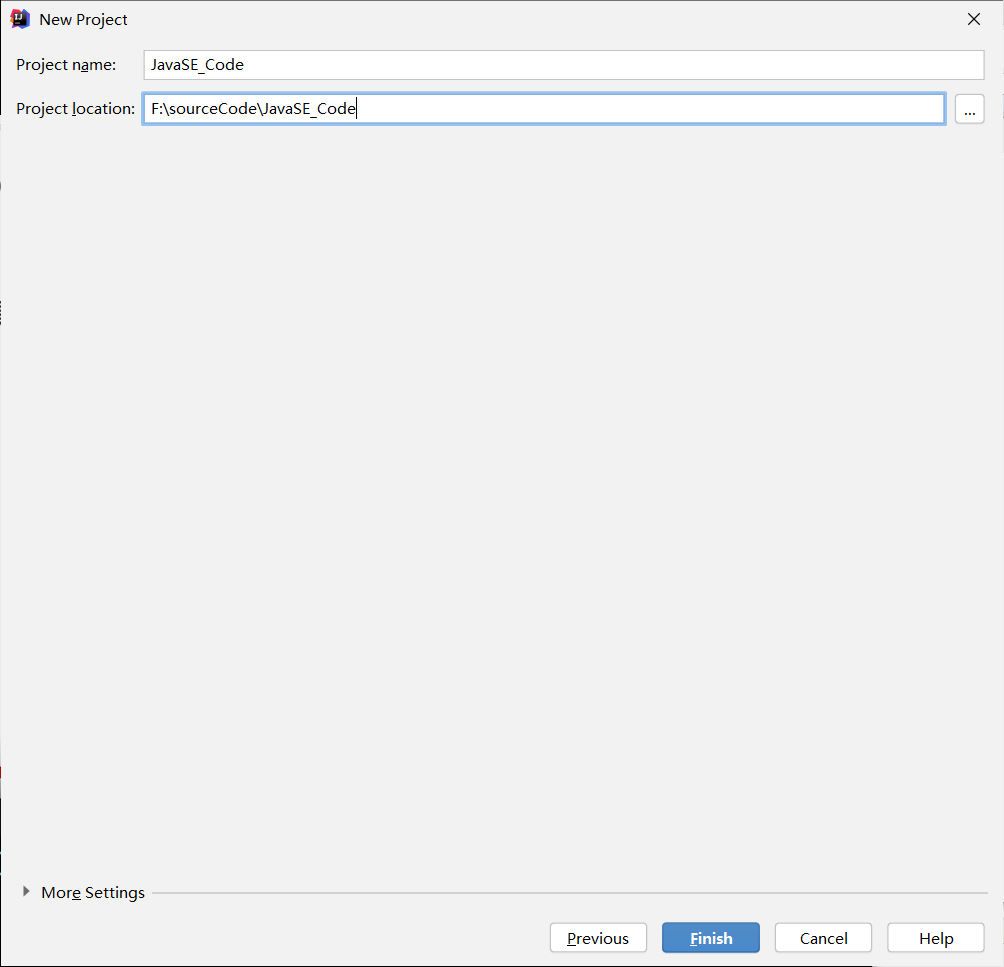 输入项目名称:JavaSE_Code;输入项目存储路径,点击Finish。(根据自己需求输入)