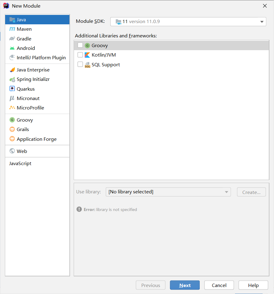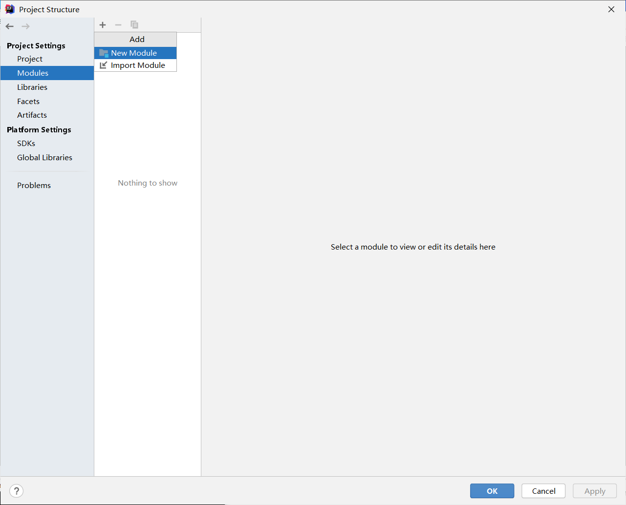 IDE中创建新模块(会弹出如下界面),点击Modules,点击+加号,选第一个。