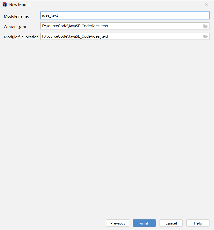 在Module name:修改我们的模块名称为:idea_test,点Finish
